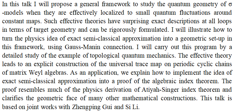 冬季几何物理研讨讲座4:Geometry of Localized Effective Theory and Algebraic Index