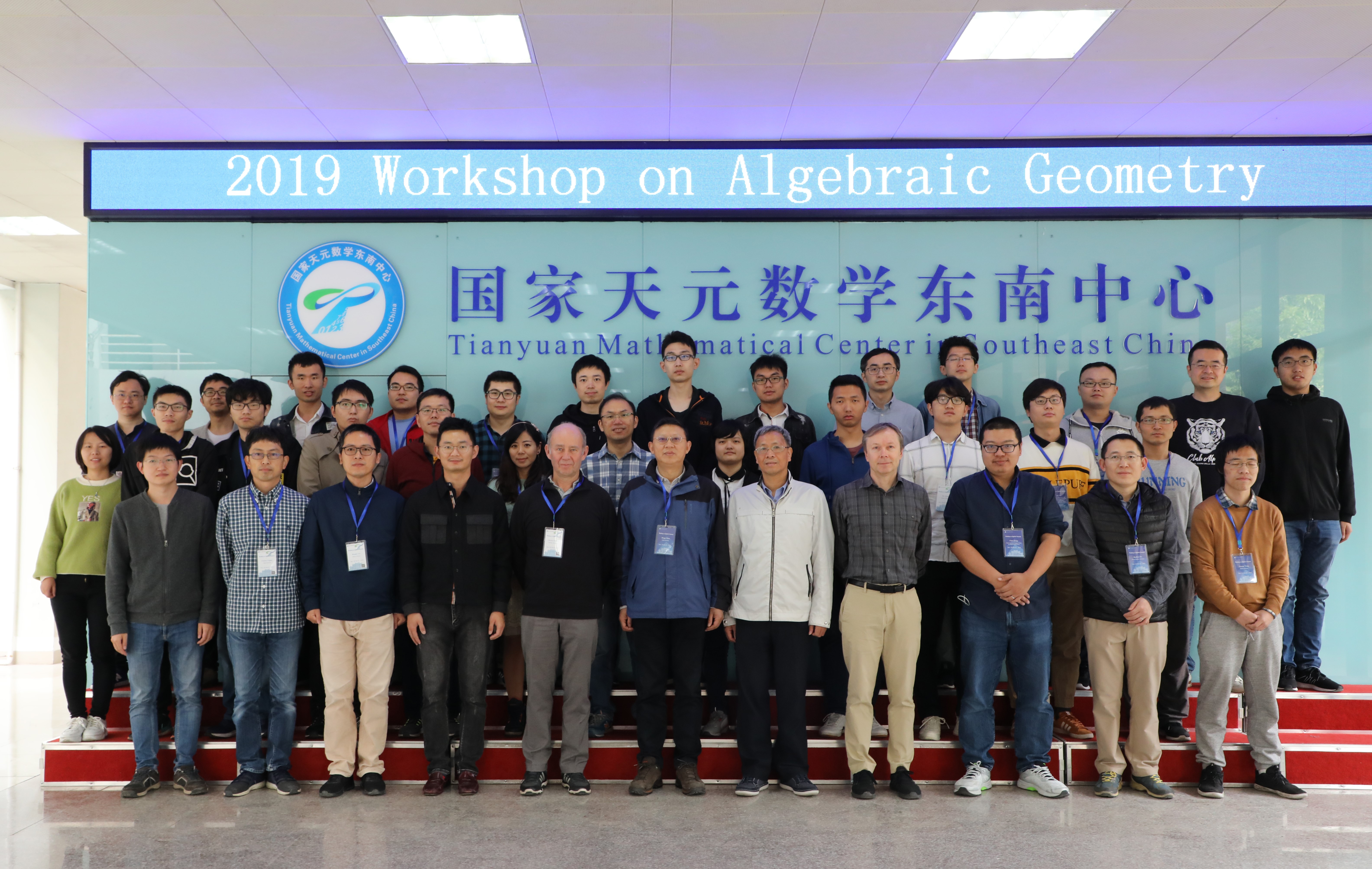 11月29日至12月1日,代数几何研讨会(Workshop on Algebraic Geometry)继而开始。来自美国佐治亚大学的Valery Alexeev教授, 日本大阪大学的Osamu Fujino教授及kento Fujita教授,复旦大学的陈猛教授及江辰教授,中国科学院数学与系统科学研究院的付宝华教授、上海数学中心的江智副教授、中国科学技术大学的张磊教授等近四十名专家学者参加了会议。研讨会围绕极小模型纲领、Fano 簇、模空间、特殊簇的刻画等前沿课题,组织了12场报告。与会专家和师生为丰厚的学术讲座内容所吸引,并针对报告所聚焦的科学问题、未来的发展进行了广泛地交流讨论。整个大会内容丰富、互动热烈、精彩纷呈。