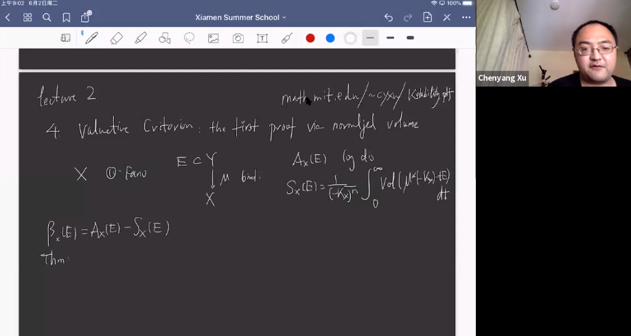 6月1日至6月5日,国家天元数学东南中心在线举办了Fano簇暑期学校(Summer School on Fano Varieties),邀请了包括许晨阳教授(美国麻省理工学院)在内的6位海外知名专家。本次暑期学校设置了3门课程,共30课时,招收了来自国内外30多所高校的72名学员。