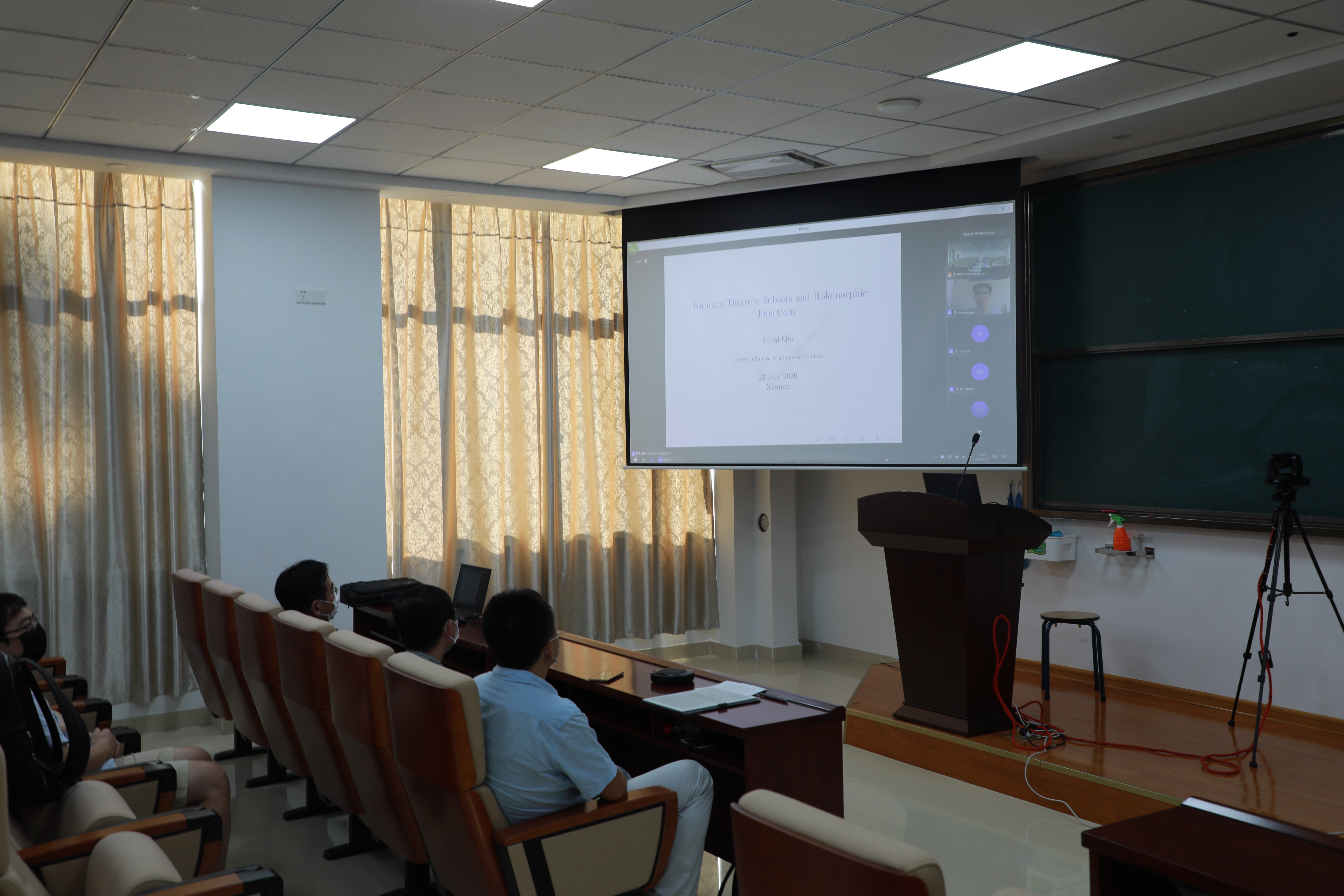 7月23日,国家天元数学东南中心通过腾讯会议APP举办线上第十七期Colloquium,邀请了中科院数学所邱彦奇教授作题为《Random Discrete Subsets and Holomorphic Functions》的学术讲座。本场Colloquium由国家天元数学东南中心执行委员会主任、厦门大学校长助理、厦门大学数学科学院院长谭绍滨主持。