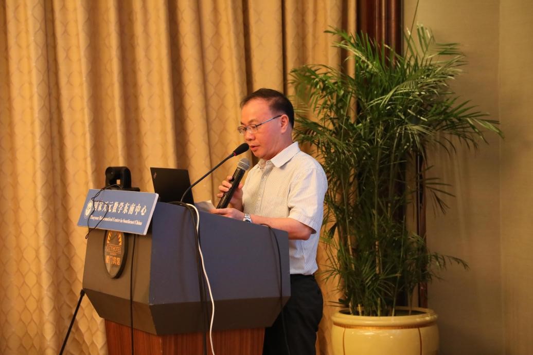 中国数学会理事长、国家天元数学东南中心学术委员会主任田刚院士代表主办方致开幕辞。作为本次活动的主要组织者之一,田刚院士向各位参会老师表示了热烈欢迎,同时向与会专家介绍了本次会议的目的及宗旨。最后祝愿大家端午安康,在厦门度过愉快的时光。